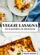*Lasagna noodle recommendations: I like to use DeLalloโs Whole Wheat Lasagna Noodles (affiliate link) and Whole Foodsโ 365 No-Boil Lasagna Noodles. See below for gluten-free suggestions.