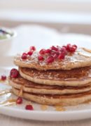 This wholesome coconut pancakes recipe is made with whole wheat flour, coconut milk or fresh coconut water, and unsweetened coconut flakes. Recipe serves 2 hungry people (makes about eight 4-inch wide pancakes).