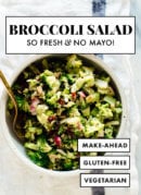 Have made this many times & everyone loves it. We love salads without mayo, they are much lighter & easy to take to a pot luck where it might be unrefrigerated for a time. Without the cheese itโs perfect for my vegan friends. I was unaware a raw broccoli salad could be so good. Thereโs almost no waste since the stems can be included. Thank you for a tremendous salad!