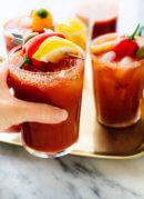 Make Bloody Mary cocktails at home with this delicious recipe! This Bloody Mary mix is made from scratch with basic ingredients. It’s perfect for your next brunch. Recipe yields 4 cocktails.