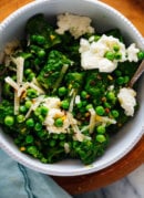 This lemony green pasta recipe tastes as bright as it looks! It’s easy to make with kale, pasta, and peas—they all cook in the same pot. Serve this pasta immediately for the best color and texture; leftovers are best consumed within a day or two. Recipe yields 4 servings.