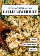 This cauliflower rice recipe features fresh Mediterranean flavors, including toasted almonds, lemon and parsley. It's the perfect light side dish! It's low carb, vegan and gluten free, too.