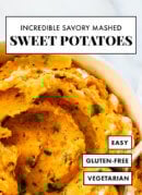 I’m on a mission to stock this food blog with all the holiday recipes you might need, and it’s about time I shared a mashed sweet potato recipe. The problem with most mashed sweet potatoes is that they’re made even sweeter with brown sugar and marshmallows. Sweet potatoes are already plenty sweet on their own!