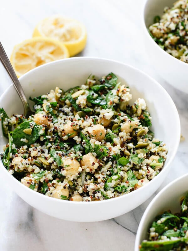 These healthy vegetarian recipes feature quinoa! Quinoa is a gluten-free, grain-like ingredient that is relatively high in protein. It offers a mildly earthy, nutty flavor and a tender, fluffy texture. Hereโs my foolproof method for fluffy quinoa and my favorite quinoa salad.