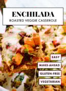 This roasted veggie enchilada casserole recipe is a hearty, vegetable-packed dinner loaded with fresh Mexican flavors! It's a great gluten-free main dish.