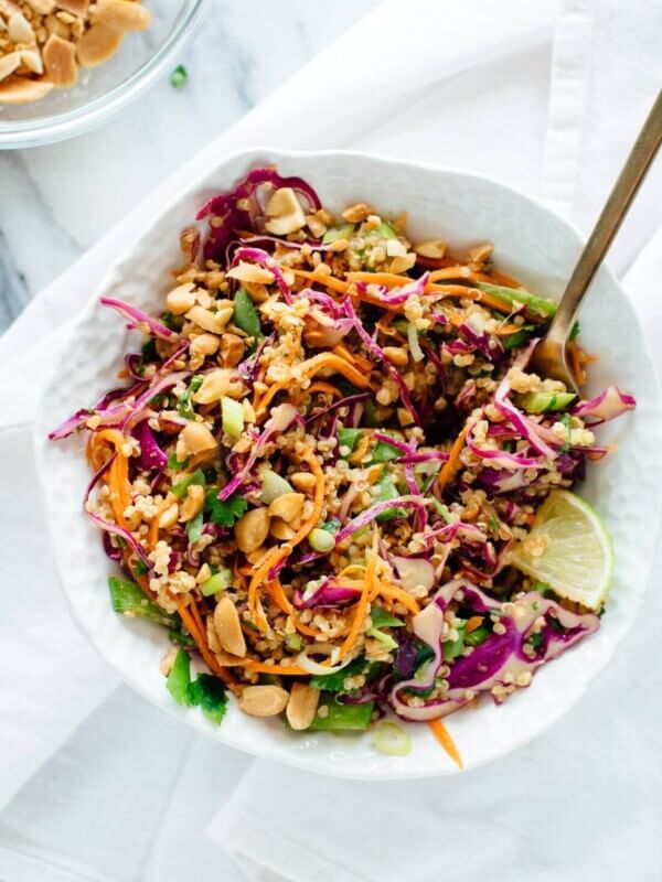 Mango Burrito Bowls with Crispy Tofu and Peanut Sauce